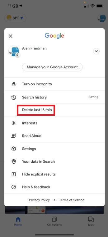 Si të fshini nga Google çfarë keni kërkuar gjatë minutave të fundit?