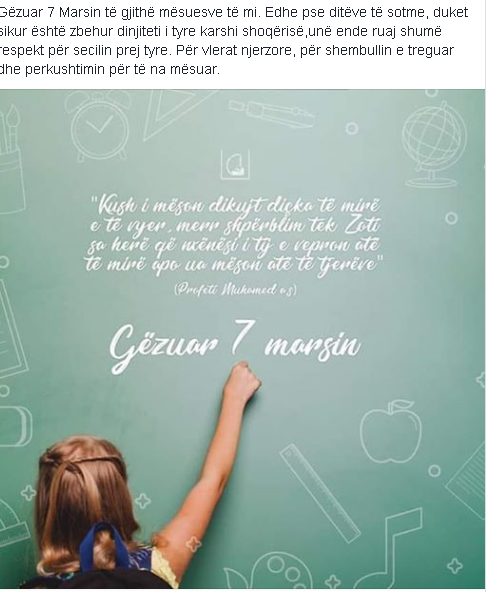 7 Marsi, postimet më të bukura për mësuesit