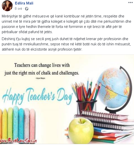 Pozitivi.org ka zgjedhur t’u urojë festën të gjithë mësuesve duke përcjellë disa nga postimet më të bukura të bëra nga qytetarët për të uruar të gjithë ambasadorët e dijes.