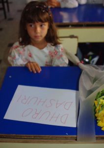 Shkollën e kishte të pamundur ta fillonte sepse nuk përballonte dot shpenzimet, mirëpo një gjë e tillë i është mundësuar falas nga shkolla “Dituria”, mëson pozitivi. Çdo ditë shkon në shkollë si të gjithë bashkëmoshatarët. Jeta e saj ka qenë plot me vështirësi, e ky fakt e ka bërë më të fortë e të vullnetshme. Në foton më poshtë vihet re shkëlqimi në sytë e vegjël e të zinj dhe dëshira që ka për shkollën.