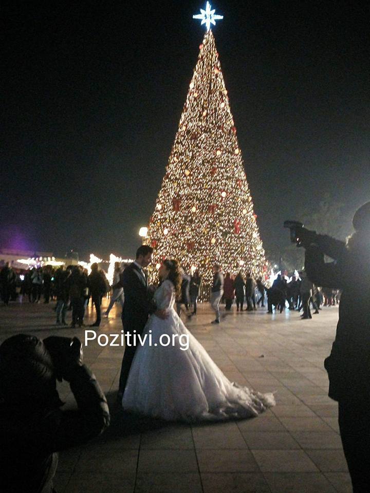 Dy të rinj kanë vendosur të kurorëzojnë dashurinë e tyre në qendër të Tiranës, pak ditë para festave të fundvitit. Atmosfera duket magjike. Sheshi “Skënderbej” me rastin e festave të fundvitit ofron një larmishmëri formash për t’u argëtuar.
