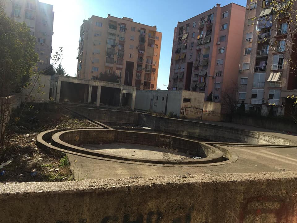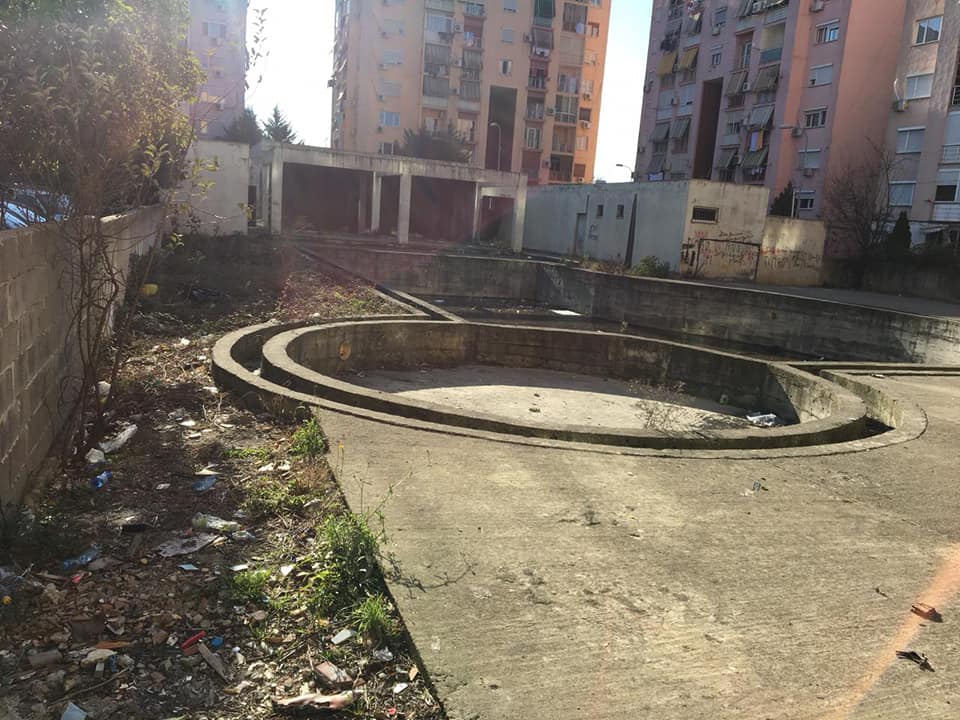 Një pishinë në mes të pallateve në Bllokun Gintash në njësinë 11 në Tiranë, e lënë përgjysmë prej më shumë se 15 vitesh është kthyer në një strehë për endacakët, për grumbullimin e mbeturinave dhe vend-konsumim i lëndëve narkotike nga të rinjtë. Banorët sot e quajnë vatër infeksionesh, jo më kot por prej papastërtisë.