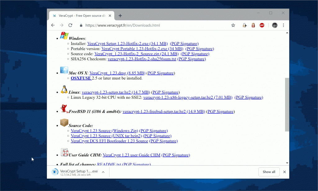 Zgjidhja falas, open-source për këtë problem është VeraCrypt. VeraCrypt është softver pa pagesë, open-source i enkriptimit për Windows, Mac OS X dhe Linux. Me një enkriptim të shkëlqyer, VeraCrypt gjithashtu ofron edhe karakteristika atraktive të sigurisë për mbrojtjen e të dhënave të përdoruesve.