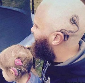 Babai i saj, në mënyrë që vajza e vogël të mos ndjehej inferiore ndaj tjerëve vendosi të presë flokët e të bëjë tatuazh në kokë të njëjtin aparat dëgjues. Një gjest që tregon dashurinë e pafund të të atit për të bijën.
