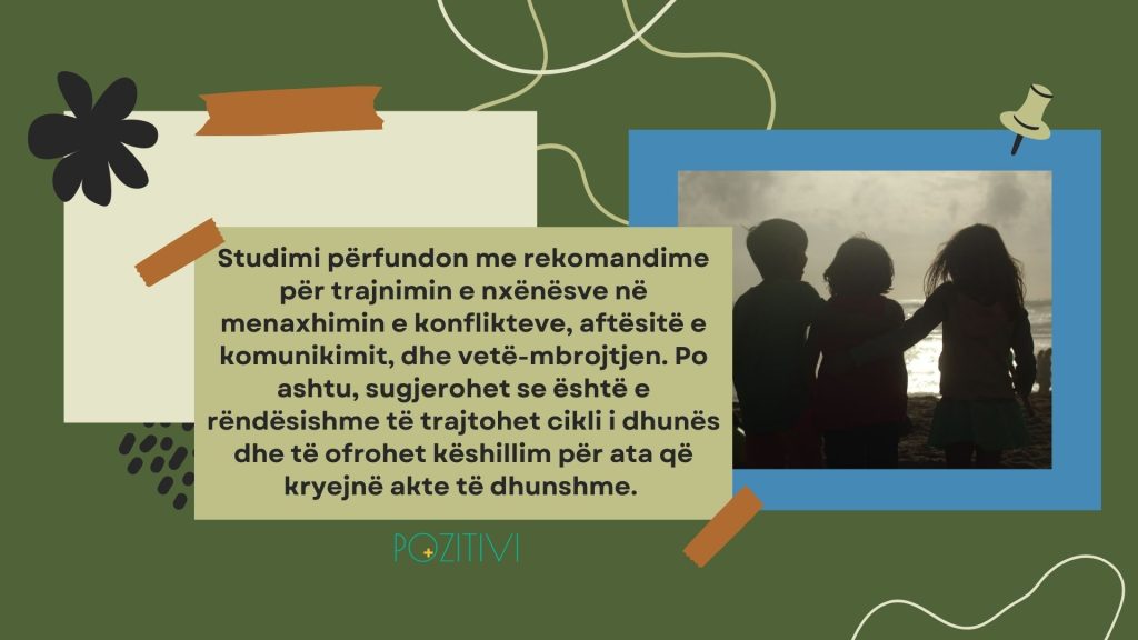 U vu re se studentët priren të anojnë drejt dhunës pas mosmarrëveshjeve mes tyre. Kështu, ata besojnë se dhuna nuk mund të parandalohet. Ky zbulim tregon pafuqinë e studentëve. Prandaj, është e rëndësishme t’u mësoni studentëve aftësitë për zgjidhjen e problemeve, zgjidhjen e konflikteve, aftësitë e komunikimit, vetë-mbrojtjen në situatën e dhunshme, aftësitë e kërkimit të ndihmës, të cilat janë aftësitë thelbësore të jetës.