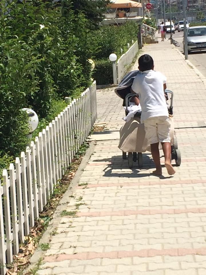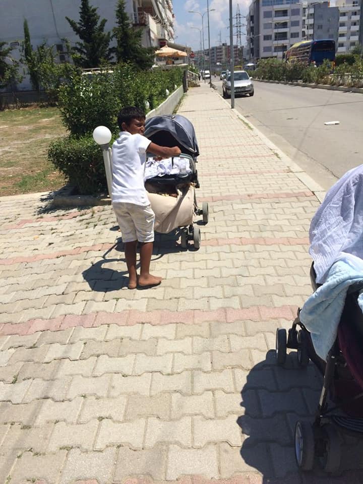 Kur e pyesim se përse kujdeset ai dhe jo mamaja për foshnjën, thotë se ajo është në punë. Mamaja e tyre mbledh kanaçe për të siguruar jetesën. Ashtu i menduar, ndërsa i jepte karrocës me të vëllanë brenda, për një moment ndaloi të shikonte një tjetër foshnjë që i kaloi përreth, po ndryshe nga vëllai i tij fëmija tjetër shoqërohej nga një zonjë që me siguri ishte e ëma. Përveç rrezikut që ekziston kur një fëmijë kujdeset për një foshnjë, ka dhe shembuj pozitiv siç eshte rasti i këtij 10 vjeçari i cili përpiqet të japë kontributin e tij në familje duke mbajtur të vëllanë.