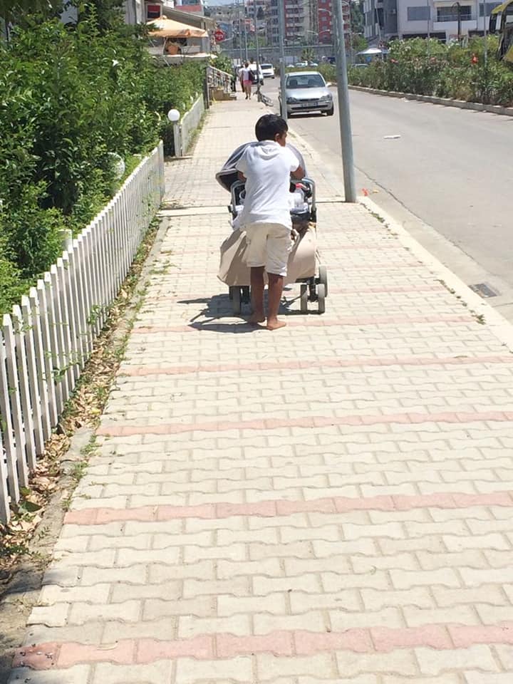 Në mes të verës në një zonë në Durrës ku pjesa më e madhe e njerëzve po shijojnë pushimet në det, ky 10 vjeçar ka një tjetër detyrë për të bërë. Ky fëmijë kujdeset për të vëllanë, që ende është një foshnjë. Çdo ditë e mban atë, duke e shëtitur nëpër rrugë, derisa t’ju kthehet e ëma.