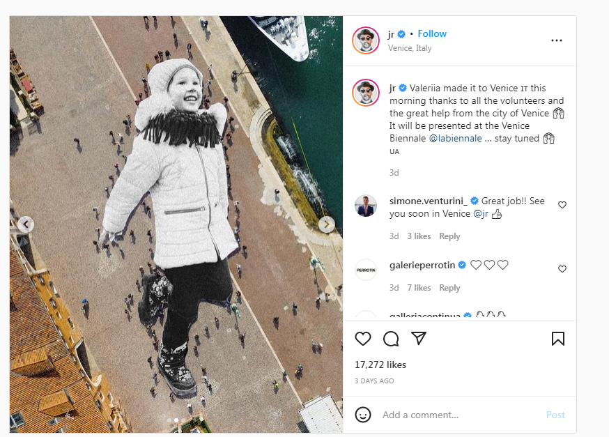 Fotoja gjigante e 5-vjeçares ukrainase, e krijuar nga artisti francez Jr, u bë e njohur sepse revista Times i kushtoi asaj një kopertinë në mars dhe ka qenë e njëjta që u vendos në rrugën Schiavoni në Venezia.