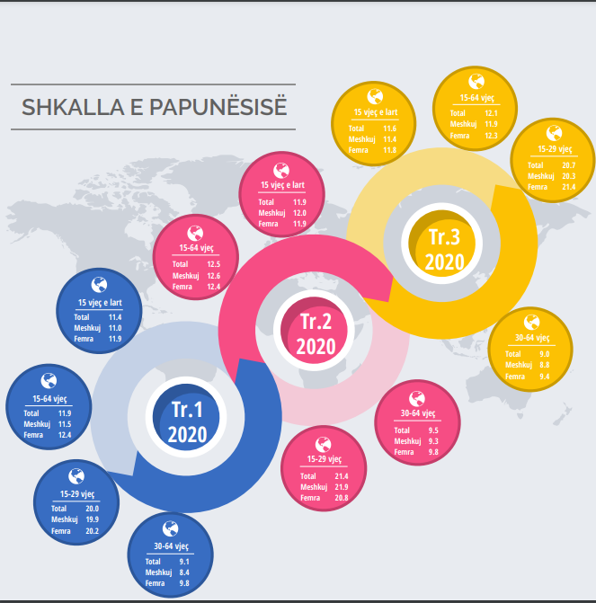 Rënia e fuqisë blerëse, bëri që të ulen të ardhurat për bizneset dhe në të shumtën e rasteve shpenzimet nuk janë përballuar dot, ndaj shumica prej tyre kanë nisur me shkurtime të stafit e deri në mbyllje të aktivitetit. Në fakt, ky detaj reflektohet edhe në të dhënat zyrtare të INSTAT për shkallën e papunësisë në vend. Në raport me vitin 2019, kjo shkallë është rritur në tërësi për moshën nga 30 deri 64 vjeç, nga 8.8 në 9.5 përqind për vitin 2020. Por, grupmosha më e prekur, po sipas të dhënave të INSTAT, duket se janë të rinjtë nga 15 deri 29 vjeç, papunësia e të cilëve në tremujorin e dytë të vitit 2020, ka arritur deri në 21.4 përqind. Bie në sy gjithashtu fakti se femrat në raport me meshkujt e kësaj moshe, kanë qenë më të goditura nga papunësia. Arsyeja mbase gjendet tek lloji i shërbimeve që janë mbyllur, e që punësojmë më shumë femra se meshkuj. Kjo reflektohet edhe nga të dhënat zyrtare të Tatim Taksave Vendore.
