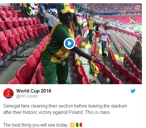 Një tjetër moment për tu mos humbur është gjesti i kësaj tifozeje e cila pas fitores historike të Japonezëve kundër Polonisë filloi të pastrojë stadiumin.