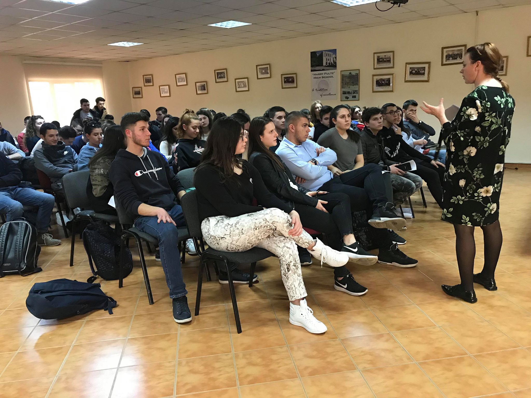 Takimi i rradhës u zhvillua me nxënësit e Institutit “Harry Fultz”, në Tiranë, me datë 21 Shkurt 2019. Gjatë këtij sesioni ndër të tjera u diskutua rreth procesit të integrimit dhe negociatave në të cilin vendi ynë po kalon, si dhe aktivizmit të të rinjve për të marrë pjesë në këtë proces.