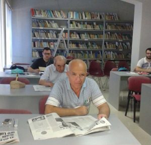 Gjithashtu në këtë bibliotekë na bëri përshtypje një tjetër zotëri në moshë të thyer, që shkruante në kompjuter. Pyetëm në lidhje me të dhe mësuam se ai përdorte ambjentet e bibliotekës për të shkruar madje ishte dhe autor i dhjetra botimeve.