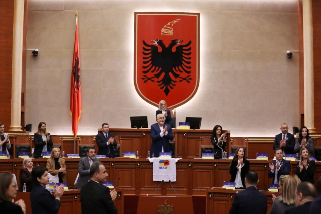 Në parlamentin shqiptar të “veshur” me ngjyrat e Ukrainës është miratuar pas tre orësh diskutime kushtuar ngjarjeve të Ukrainës, një rezolutë në mbështetje të saj përballë sulmit rus, ditën e djeshme.