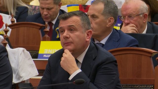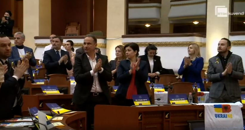 Në shenjë solidariteti, seanca nisi me një duartrokitje për qëndresën që po bën Ukraina ndaj pushtuesit rus. I pranishëm në sallën e Kuvendit në këtë moment ishte edhe ambasadori i Ukrainës në Tiranë, Volodymyr Shkurov, cili është përlotur teksa është ngritur në këmbë për të falenderuar parlamentin për suportin.