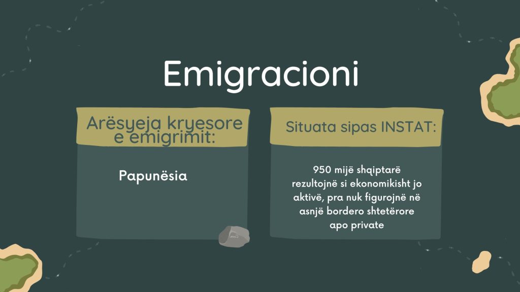 Në këtë mënyrë një pjesë e të rinjve kanë zgjedhur të emigrojnë dhe jo gjithmonë në rrugë të ligjshme. Mediat britanike kanë raportuar se një numri i konsiderueshëm i shqiptarëve kanë mbërritur në Angli, ndërsa vendet duhet të shohin politikat e tyre për të frenuar këtë lëvizje ilegale dhe në anën tjetër për të mbajtur rininë shqiptare në vend, si krahu më i rëndësishëm i punës.
