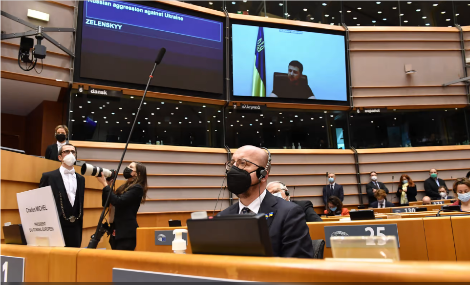 Presidenti ukrainas Volodymyr Selenskyj dha mesazhe të forta përmes një lidhjeje me video-link mbajti një fjalim nga Kievi. Zelenski theksoi se vendi i tij po paguante një cmim të lartë për lirinë. Presidentja e komisionit europian Ursula Von Der Lejen, nga ana e saj u shpreh se ky është momenti i së vërtetës për BE-në, duke iu referuar pritjes së refugjatëve.