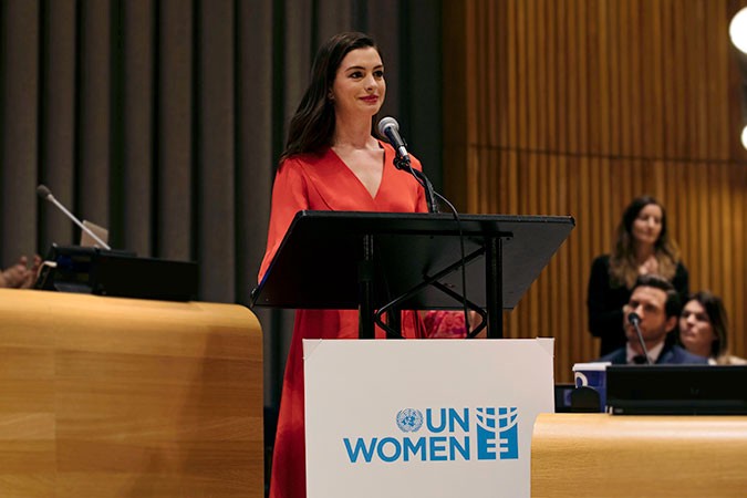 Aktorja mbështetëse e të drejtave të vajzave dhe grave dhe ambasadorja i UN Women’s Goodwill, Anne Hathaëay, vazhdon të punojë për të rritur ndërgjegjësimin mbi çështjet e lejes prindërore dhe punën e pabarabartë të kujdesit si barriera të mëdha për barazinë gjinore.