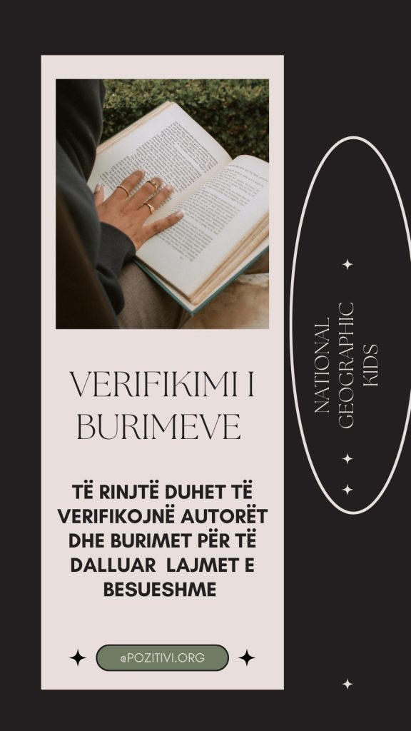 National Geographic Kids rekomandon që të rinjtë të kontrollojnë gjithmonë burimin dhe të shmangin ndarjen e informacionit pa e verifikuar. Artikulli i tyre këshillon fëmijët të mos besojnë çdo gjë që lexojnë dhe të krahasojnë gjithmonë përmbajtjen me burime të sigurta. Kjo mënyrë i nxit fëmijët të ushtrojnë një rol më aktiv në kërkimin e së vërtetës ([National Geographic Kids]