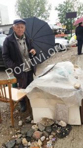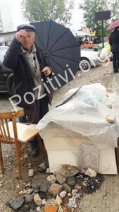 Që në orët e hershme të mëngjesit, rrebeshët e shiut binin pa u ndalur. Prej motit të keq në rrugët e Tiranës njerëzit kalonin me ngut në të gjitha anët, ndërsa një i moshuar qëndronte ulur në karrigen e vjetër. Në zonën e Astirit, pak më poshtë “Sheshit Shqiponja”, në trotuar qëndronte 82 vjeçcari Mehmet Aderraj, shkruan pozitivi.org. Çadrën e mbante mbi krye, tezga e vogël me rigon, spec, erëza dhe fara qëndronte përpara këmbëve të tij dhe qytetarëve, e mbuluar me plastmas.
