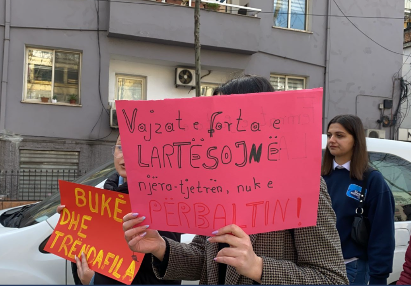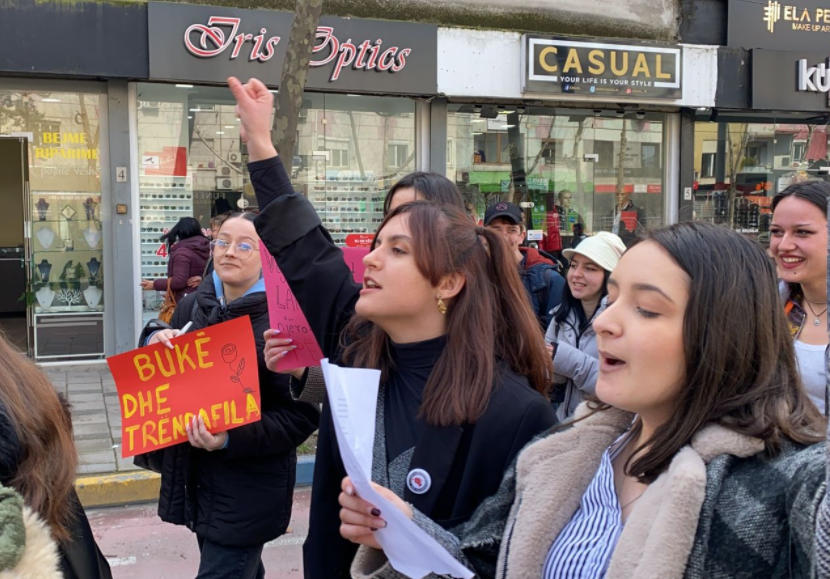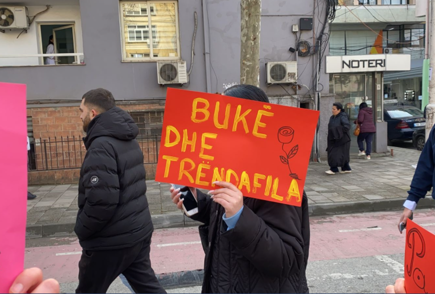 E njëjta atmosferë ishte dhe në Tiranë. Ajo që ra në sy ishin lulet shumëngjyrëshe në çdo cep të Tiranës e ku sytë e grave dhe vajzave nuk mungonte buzëqeshja dhe buqetat në duar. Disa prej grave kanë zgjedhur të protestojnë në këtë ditë për mbrojtjen e të drejtave.