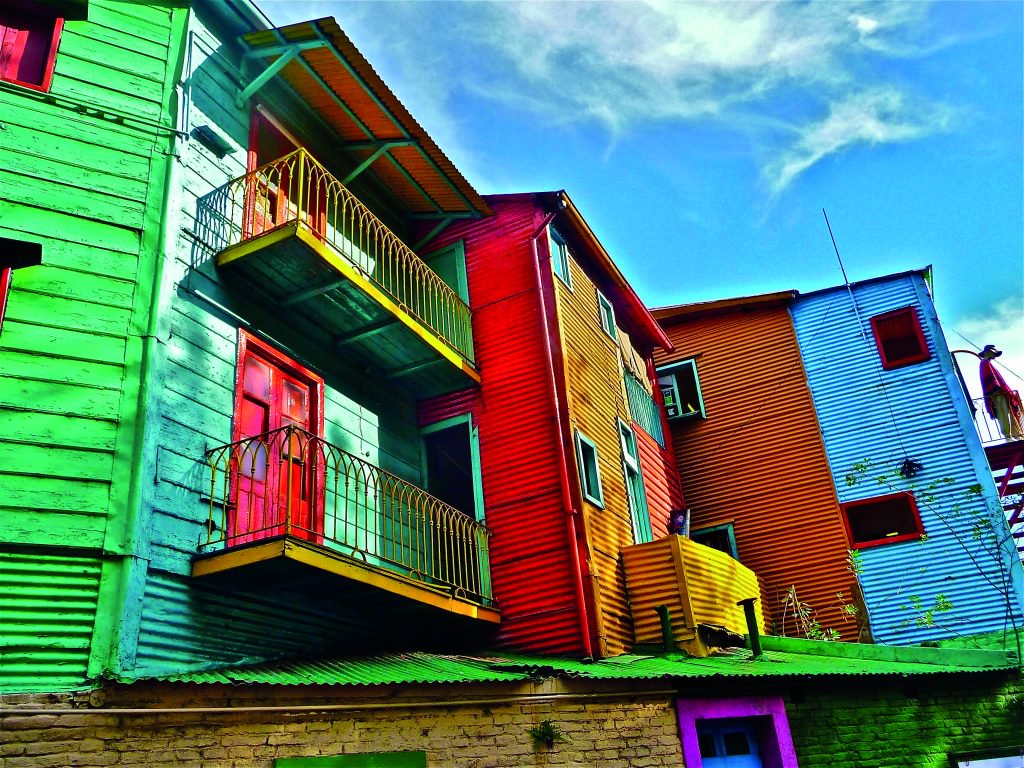 3) Pikturë e qytetit; Lagjia e portit të La Boca në Buenos Aires, Argjentinë, përballet me shumë sfida: varfëria dhe krimi midis tyre. Pranë ekipit të Boca Juniors ndodhet muzeu i rrugës Caminito me shtëpi krejt ngjyra të ndezura. Thonë se peshkatarët dikur përdorën ngjyra të ndritshme detare.
