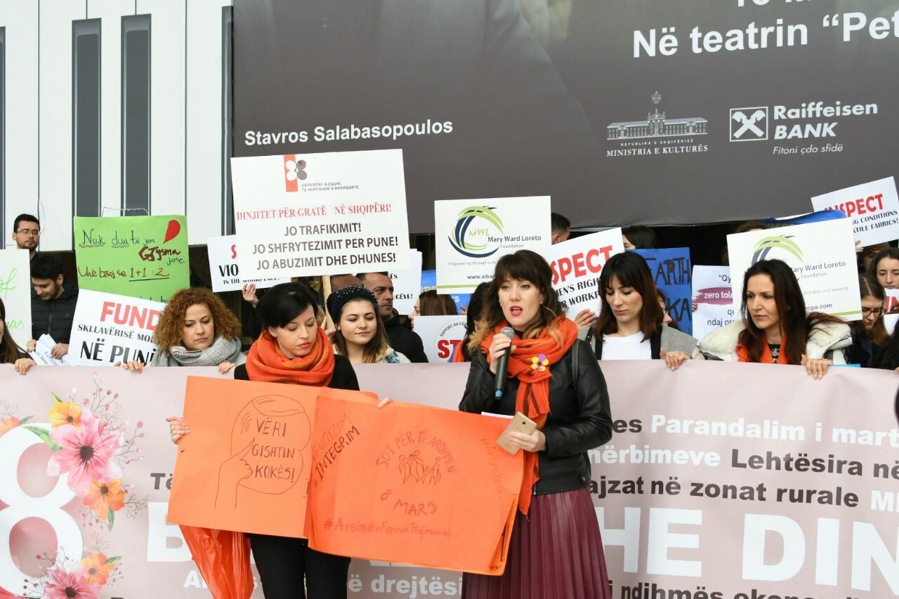 Sot në ditën ndërkombëtare të gruas, shoqeria civile, aktivistet gra nga e gjithë Shqipëria kanë zhvilluar një marshim në sheshin “Skënderbej” në Tiranë, për drejtat e grave dhe vajzave! Të gjithë së bashku pa dallim, burra e gra që iu bashkuan kësaj kauze kanë vendosur ta bëjnë këtë marshim në shenjë simbolike dhe revolte që të drejtat e tyre të respektohen më shumë. Ky marshim është mbështetur nga gra të thjeshta, sakaq dhe nga ato gra që janë pjesë e organizatave të ndryshç kanë bërë thirrje për më shumë solidaritet ndaj tyre.