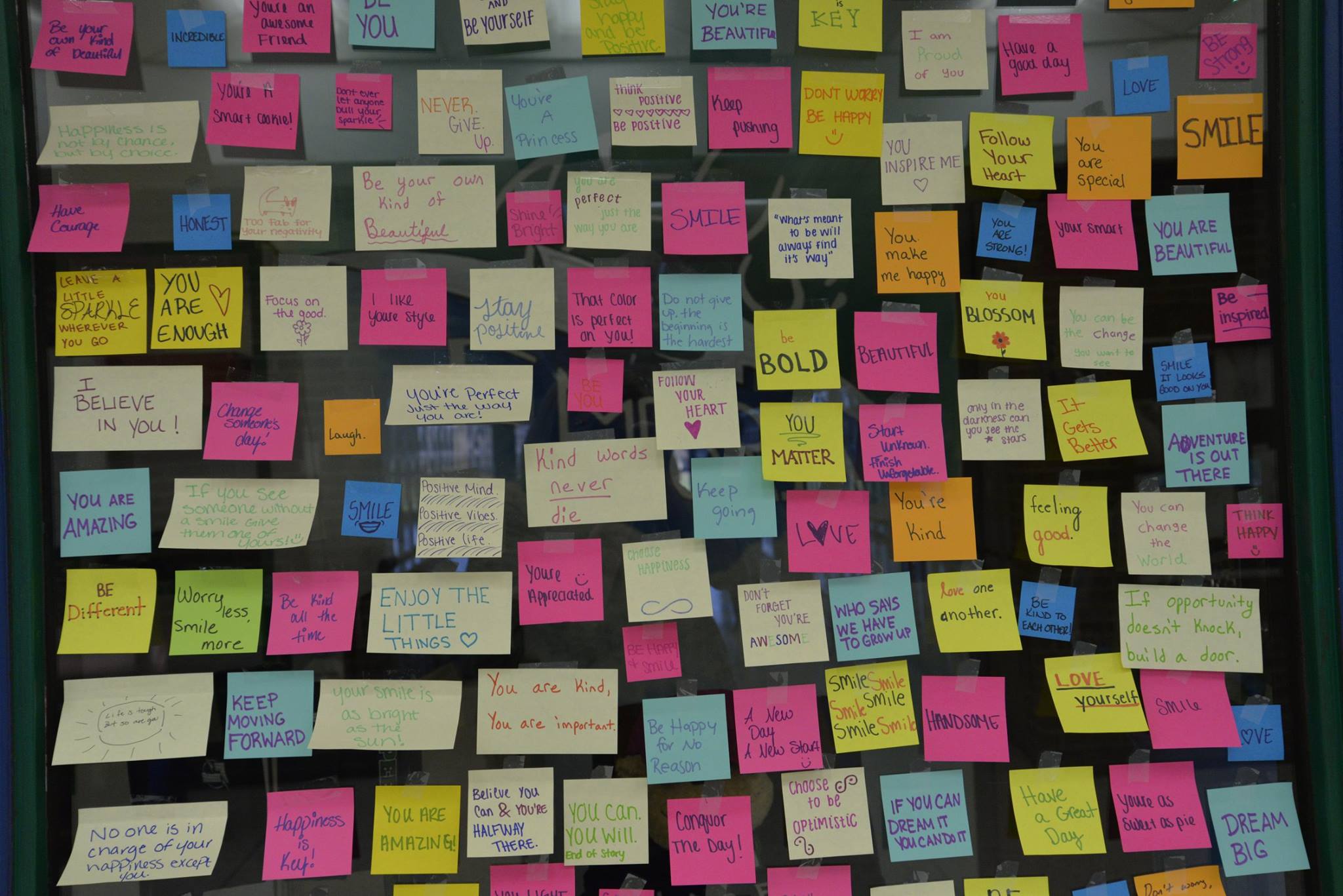 Nxënëset frymëzuese, ngjisin në muret e shkollës qindra mesazhe pozitive