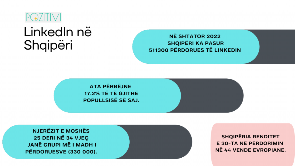 Siç duket nga statistikat, Shqipëria, edhe pse në rritje, nuk e përdor aq shumë sa vendet e tjera nëpër botë LinkedIn. Kjo vjen edhe nga fakti që një pjesë e bizneseve shqiptare, akoma nuk kanë brenda strukturave të tyre njësi të dedikuara për Burimet Njerezore, duke mos i dhënë kështu rëndësinë e duhur kësaj pjese të domosdoshme për mirëfunksionimin e kompanive.