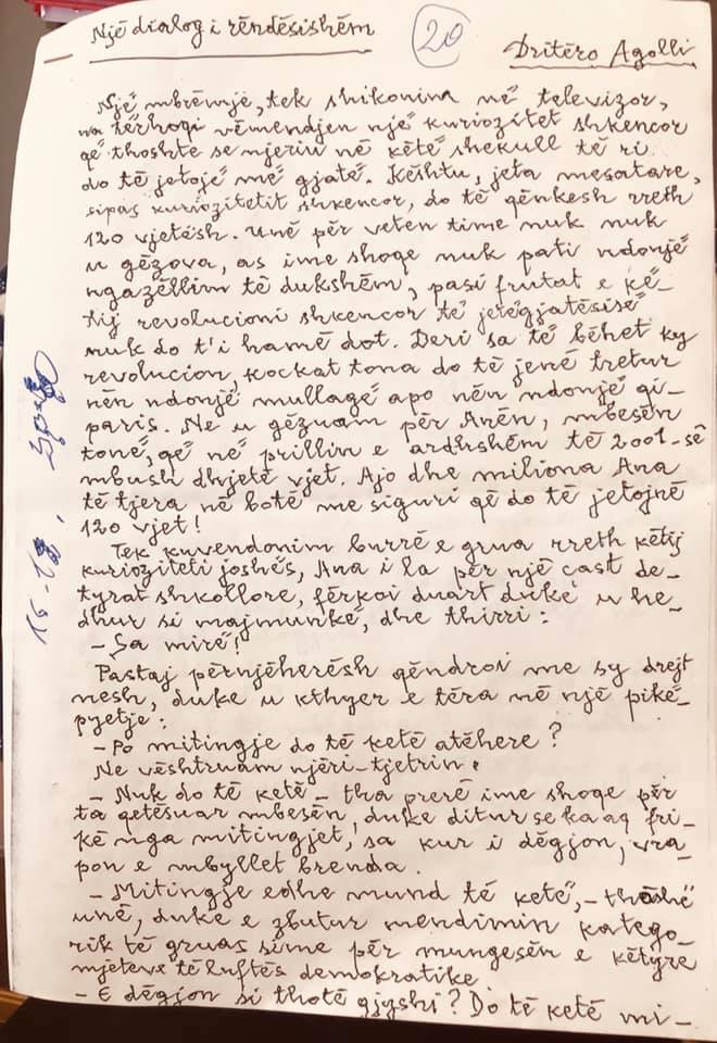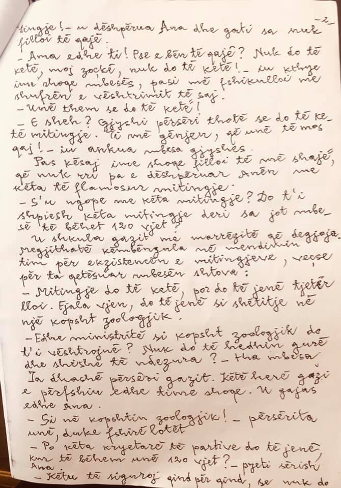 Po mitingje do të ketë atëherë ? – kështu pyeste Anna (mbesa e Driterioit) 10-vjeçare e lemerisur nga fjala miting, fjalë te cilën domosdoshmërisht e lidhte me britma, krisma armësh, sharje …