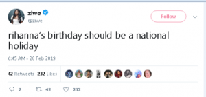 “Ditëlindja e Rihanës duhet të jetë një festë kombëtare”.