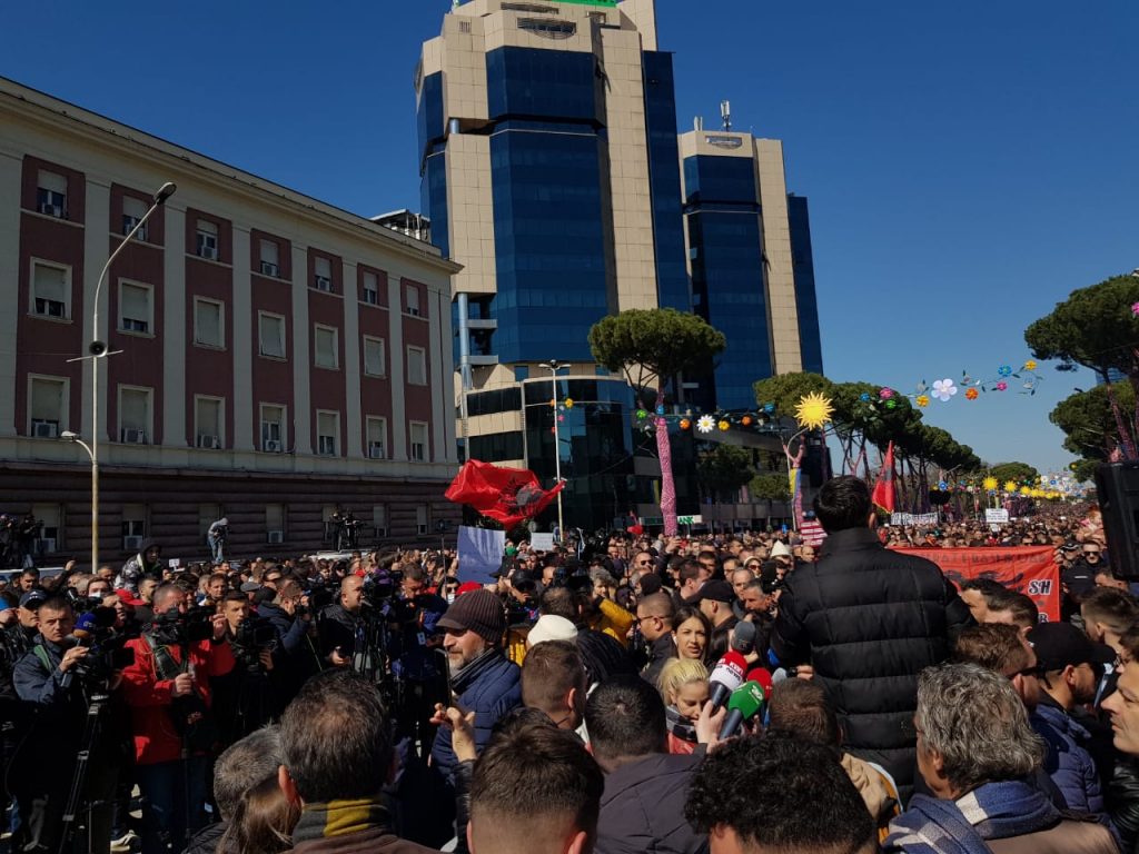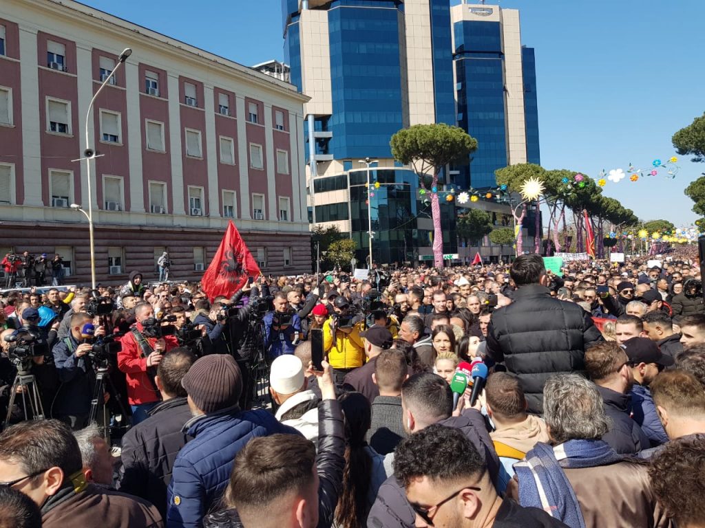 Sot në Tiranë prej orës 11 mijëra qytetarë janë në shesh. Protesta vijon…