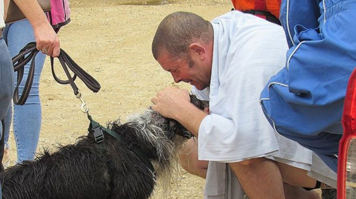 Kur u largua 20 -30 metër, Mark shkoi ta shpëtojë atë. Qeni iu zhduk nga sytë dhe ai për një çast mendoi se u mbyt. Filloi të bërtiste për ndihmë dhe për fat të mirë, një zotëri 71 vjeç, e ndihmoi Markun të dilte në breg.