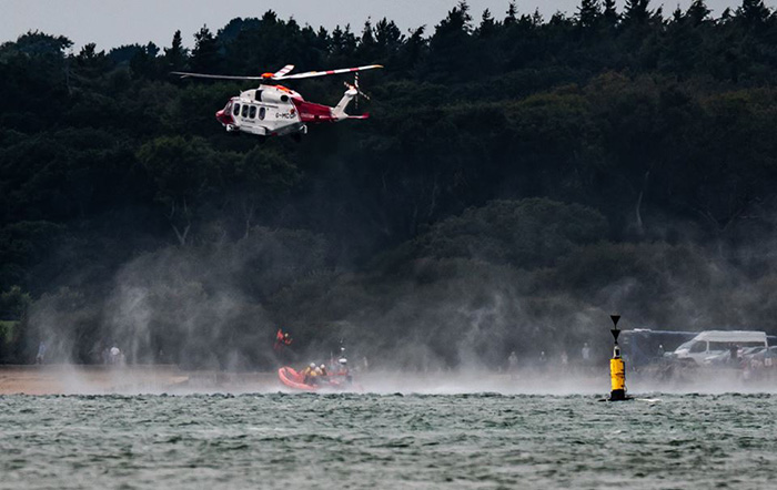 Mrekullisht, një helikopter e gjeti qenin që luftonte 200 metra në det të hapur dhe drejtoi një varkë shpëtimi në vendin ku ishte. Anëtari i anijes së shpëtimit u hodh në det dhe e tërhoqi qenin e lodhur për në barkë.