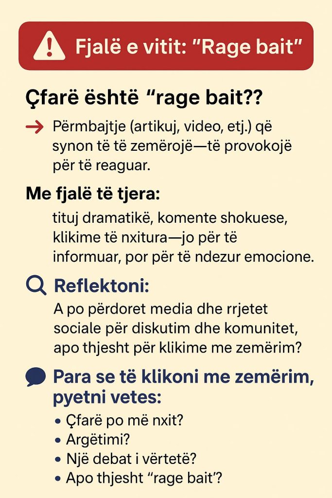 “Fakti që fjala rage bait ekziston dhe ka pasur një rritje kaq dramatike në përdorim tregon se po bëhemi gjithnjë e më të vetëdijshëm për taktikat e manipulimit në të cilat mund të tërhiqemi online.”