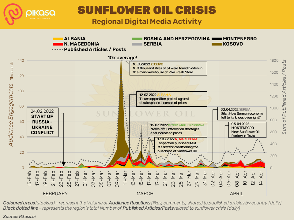 Nisur nga zhvillimet e fundit Pikasa ka bërë një hulumtim në periudhën shkurt-prill 2022, ku ka vërejtur se ka një rritje të dukshme të lajmeve, artikujve dhe postimeve në mediat dixhitale për krizën e lulediellit në 6 vende të Rajonit të Ballkanit Perëndimor.