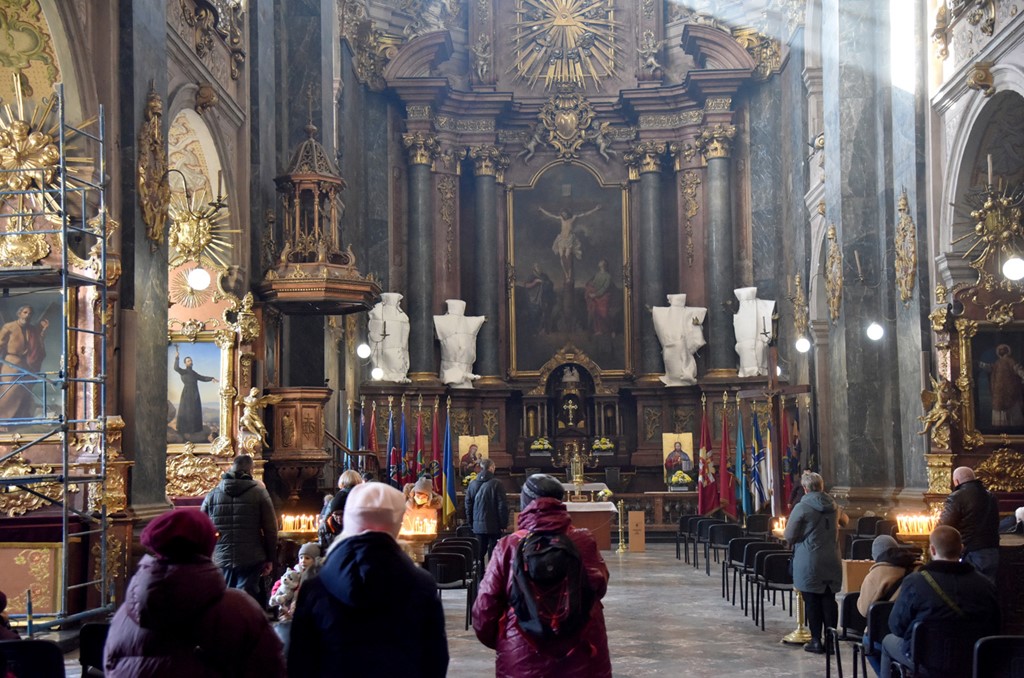 Në Lviv njerëzit nuk kanë harruar të shkonin edhe këtë të diel në kishën më të afërt nga shtëpia e tyre për t’u lutur që kjo luftë e ashpër të mbarojë. Fotografitë e mëposhtme janë nga Kisha e Apostujve të Shenjtë Pjetër dhe Pal, mëngjesin e sotëm.