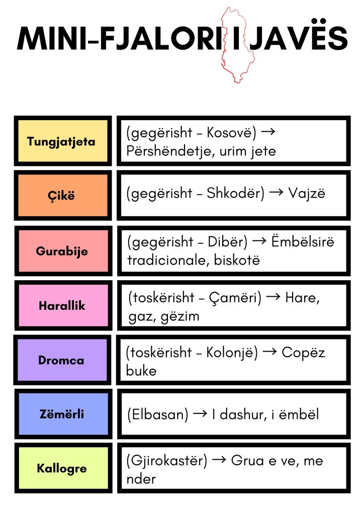 Gjuha shqipe është një pasuri e madhe kulturore, jo vetëm përmes gjuhës së saj letrare, por edhe nëpërmjet dialekteve dhe nën-dialekteve që mbajnë ngjyrat e çdo treve. Çdo krahinë ka fjalë të veçanta, që shpesh nuk kanë përkthim të saktë ose bartin një nuancë emocionale që humbet nëse zhduken.