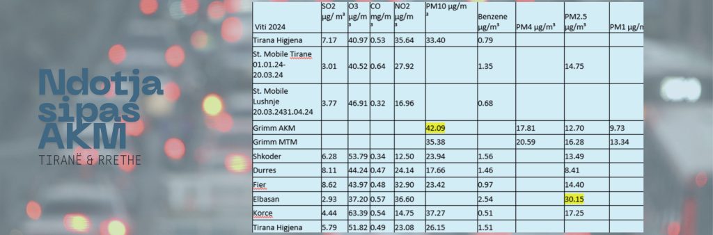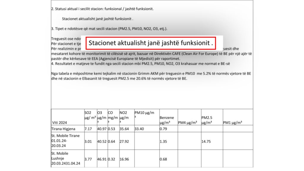 Të dhënat sipas AKMMegjithatë, nëse krahasojmë të dhënat e raportuara nga Agjencia Kombëtare e Mjedisit me matjet e GreenAL, vlerat bëjnë kontrast që ngre pikëpyetje mbi vërtetësinë e raportimeve shtetërore.