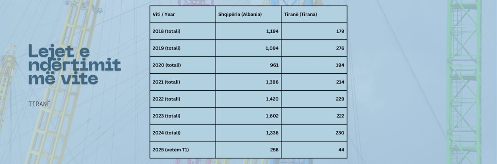 Lejet e ndërtimit në viteTë dhënat e fundit të matura nga Agjencia e Mjedisit tregojnë se Tirana është një ndër qytetet më problematike, ndjekur nga Elbasani.