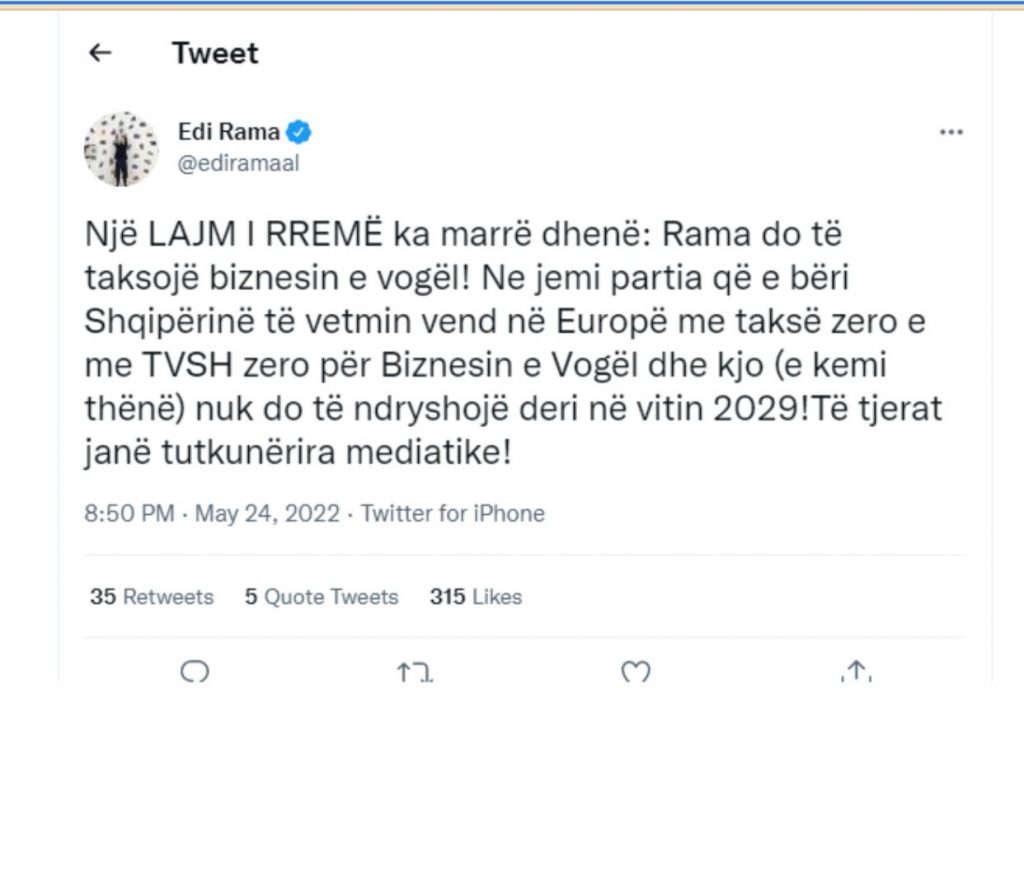 Një tjetër media, Euronews Albania publikoi një draft të projektligjin e ri të tatimit mbi të ardhurat, i cili vendos një mënyrë të re taksimi për individët, profesionet e lira dhe bizneset. Kryeministri Edi Rama e cilësoi lajmin si të rremë.