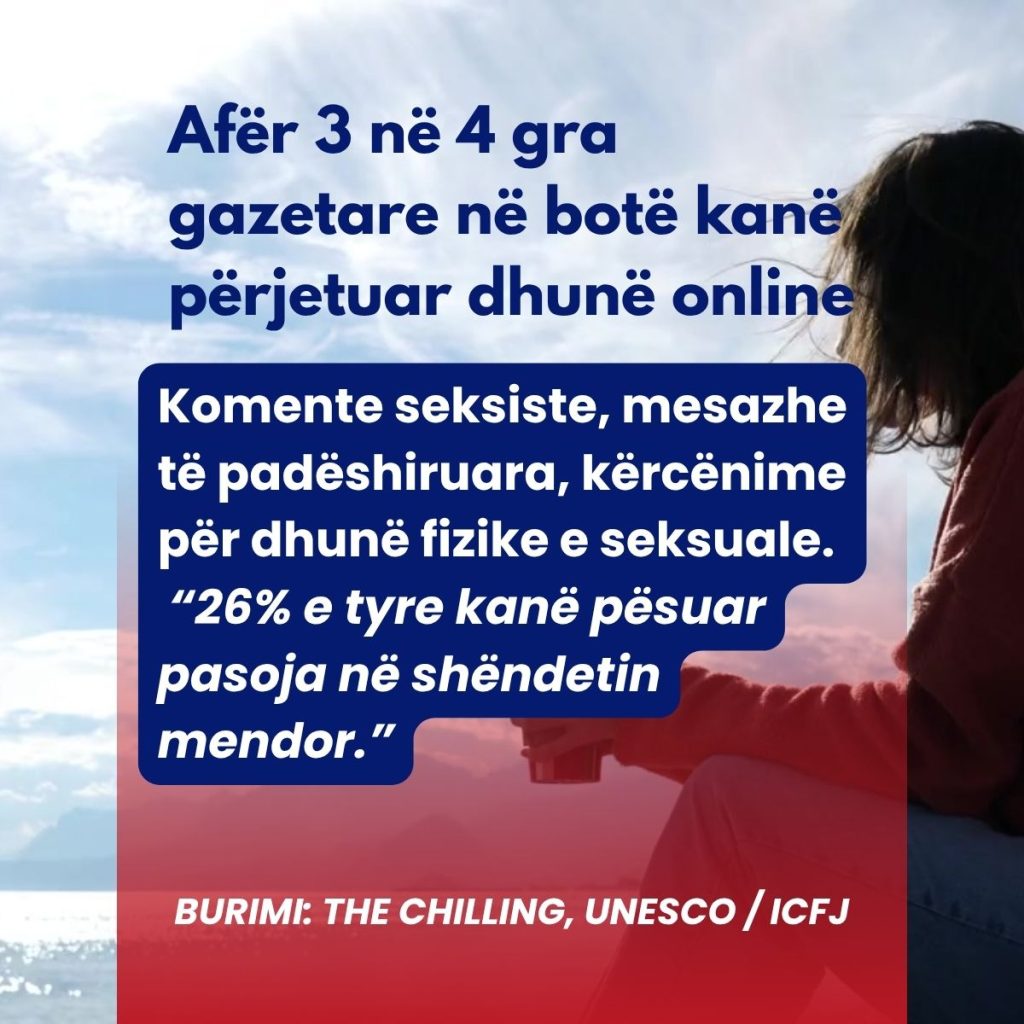 Në studimin global The Chilling (UNESCO / ICFJ) raportohet se afër 73 % e grave gazetare thanë se kanë përjetuar dhunë online gjatë punës së tyre.