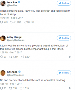 Zonjat e Twitter kurrë nuk dështojnë për të ndriçuar ditët me mençurinë e tyre të shkëlqyer, e të ngjeshur. Çdo javë, gratë grumbullohen duke përshëndetur me 140 karaktere të ndryshme teper gazmore e të veçanta.