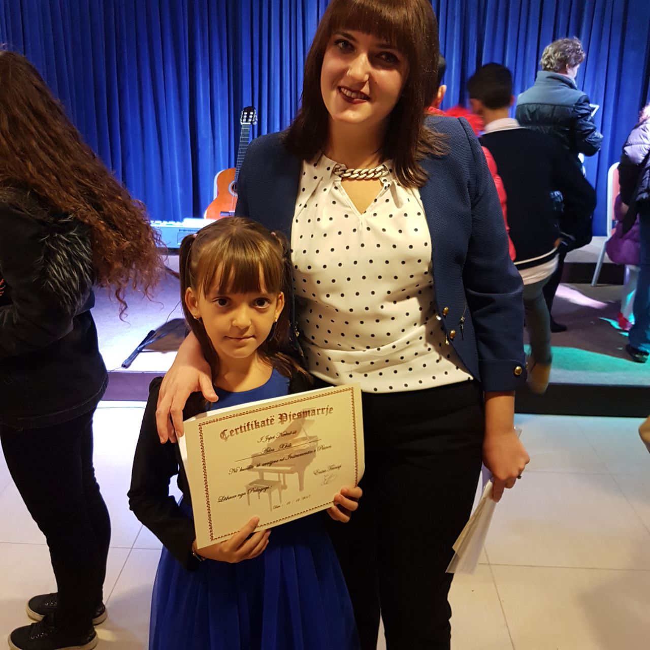 Pianistja e vogël, me vetëm 6 muaj kurs nën mbikëqyrjen e mësues Enisa Terniqi performoi pranë të gjithë të pranishmëve në këtë konkurs 3 pjesë: Christian Morris “ We wish you a merry Christmas” “We three kings of Orient are” dhe “Twinkle twinkle little star”. Në fund ajo rrëmbeu çmimin e 3.