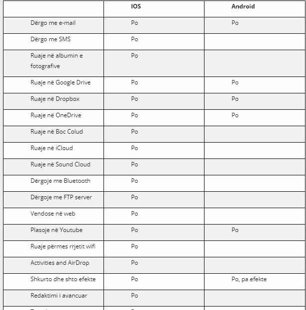 Njëra prej këtyre mundësive është shkurtimi i incizimeve dhe dërgimi i tyre me e-mail apo ruajtja në Gmail Drive, Dropbox apo OneDrive, si dhe plasimi direkt në Youtube.