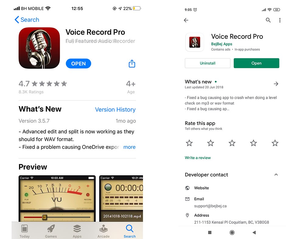 Para së gjithash duhet të shkoni në Play Store apo në App Store dhe ta shkarkoni aplikacionin Voice Record Pro. Ekziston një numër i madh aplikacionesh me emrin e njëjtë apo të ngjashëm, andaj shikoni ta shkarkoni të duhurën, e cila duket si në këtë fotografi.