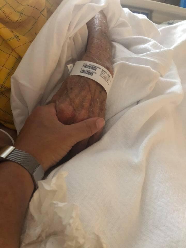 Ju mund të shikoni në këtë foto dhe do të mendoni se kjo është mbesa që ngushëllon gjyshin e saj të dashur pasi ai qëndron në gjendje të rënduar në një shtrat spitalor.